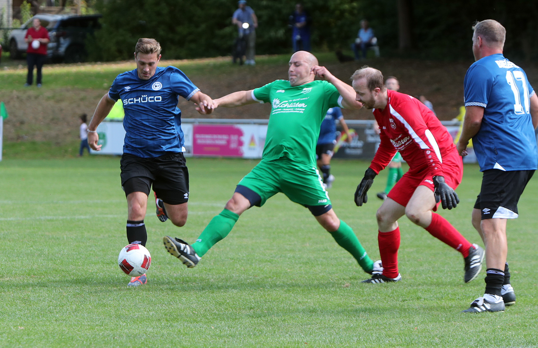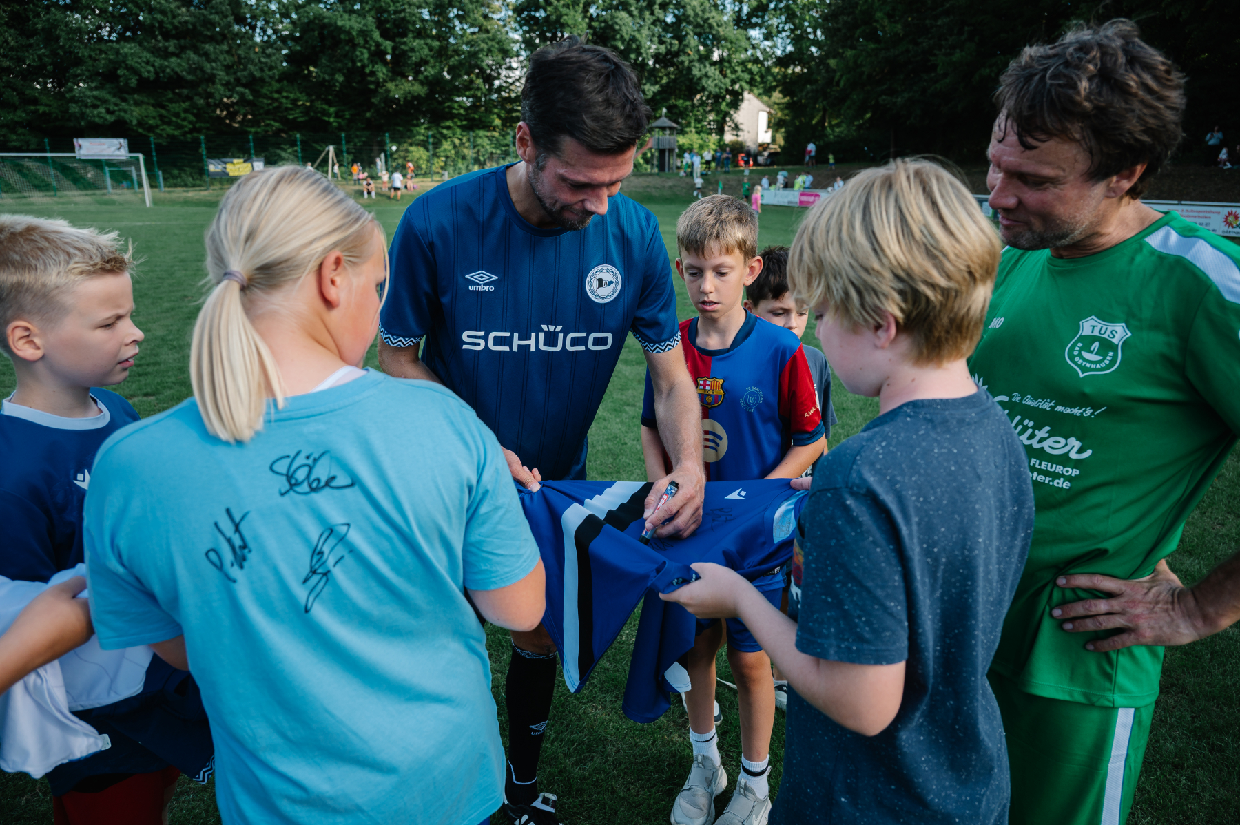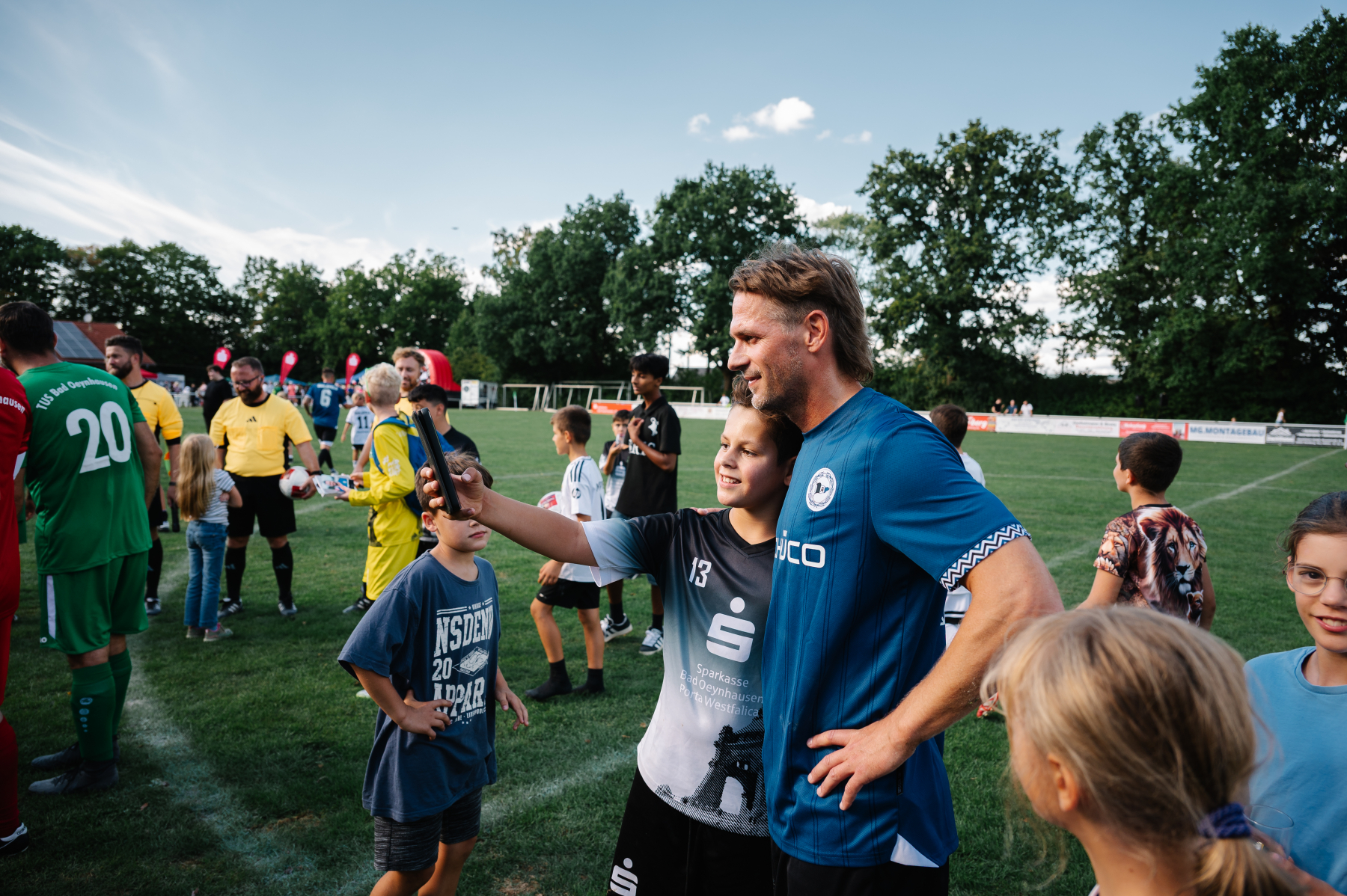 Deutlich wurde es (leider) auch beim Spiel des TuSBO gegen den DSC. Die Mannschaft von Armin Sieker startete gut in die Partie und hatte einige Offensivszenen, doch nach zehn Minuten übernahm Arminia die Spielkontrolle und zeigte sich torfreudig, sodass es zur Halbzeit 8:0 für die Arminen stand. Unter anderem Tom Schütz, Sören Brandy und Marvin Studtdrucker trugen sich sich in die Torschützenliste ein. Mit Philipp Heithölter, Markus Bollmann, Arne Feick und Nils Fischer standen weitere prominente Ex-Profis für Arminia auf dem Spielfeld. In der zweiten Halbzeit schlug sich der TuSBO dann deutlich besser und kam sogar zu zwei schön herausgespielten Treffern durch Jan Thies und Manuel Hejlek. Die Bielefelder trafen noch drei weitere Male, scheiterten jedoch auch mit einem Elfmeter an TuSBO-Torhüter Marc Erdbrügger, sodass am Ende ein 11:2-Sieg für den DSC zu Buche stand. Nach dem Schlusspfiff nahmen sich die Bielefelder zudem viel Zeit für Fotos & Autogramme, für die die Zuschauenden bereits Schlange standen.