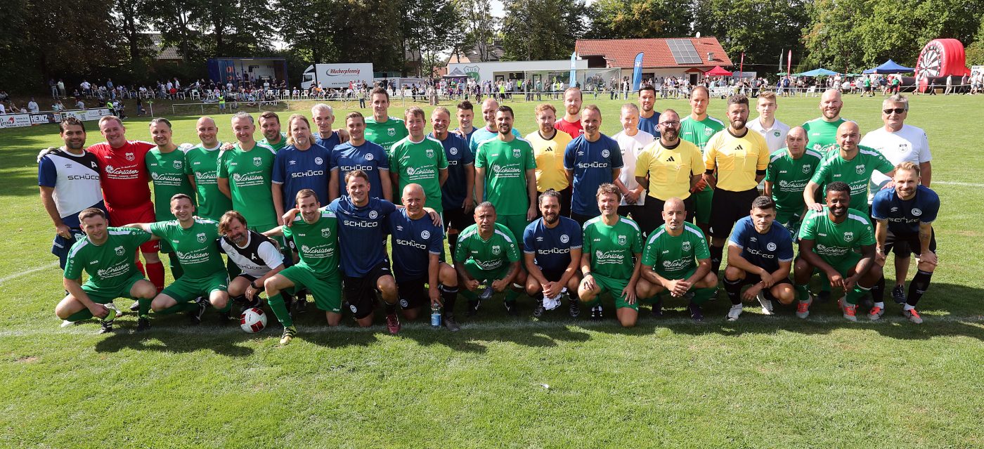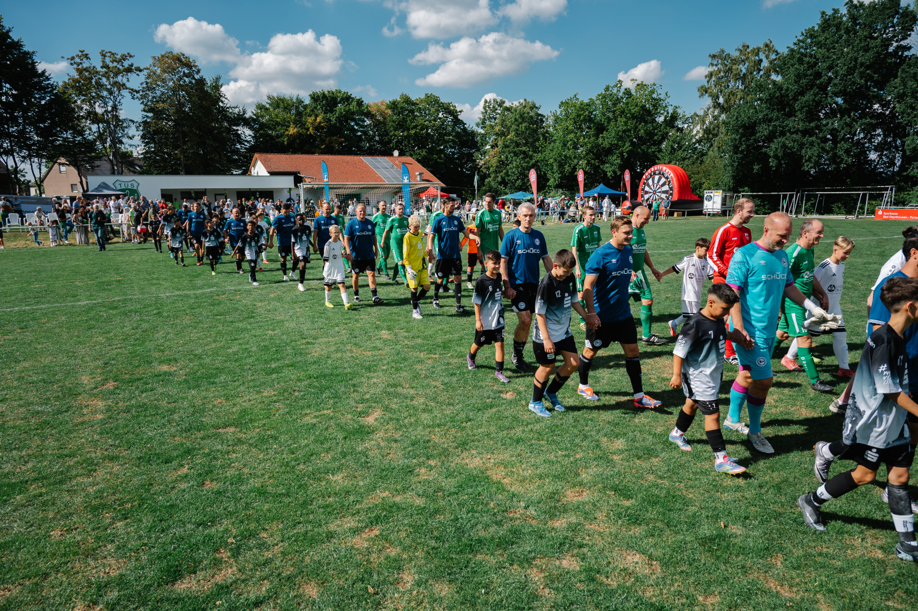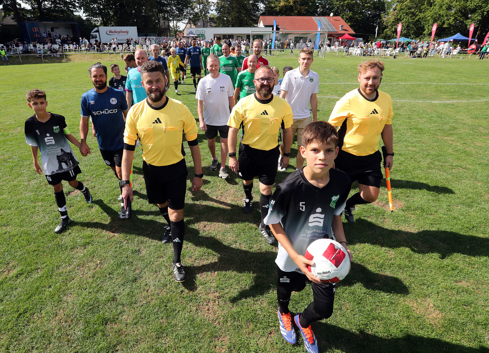 Niemand geringeres als die Traditionsmannschaft des DSC Arminia Bielefeld gab sich die Ehre, um gegen ein Allstar-Team des TuS Bad Oeynhausen anzutreten. Doch bevor das mit Spannung erwartete Highlight angepfiffen wurde, durfte die D-Jugend des TuSBO das Rahmenprogramm mit einem Einlagespiel gegen den VfL Mennighüffen eröffnen. Der TuSBO zeigte sich dabei spielfreudig und gewann mit 8:3.